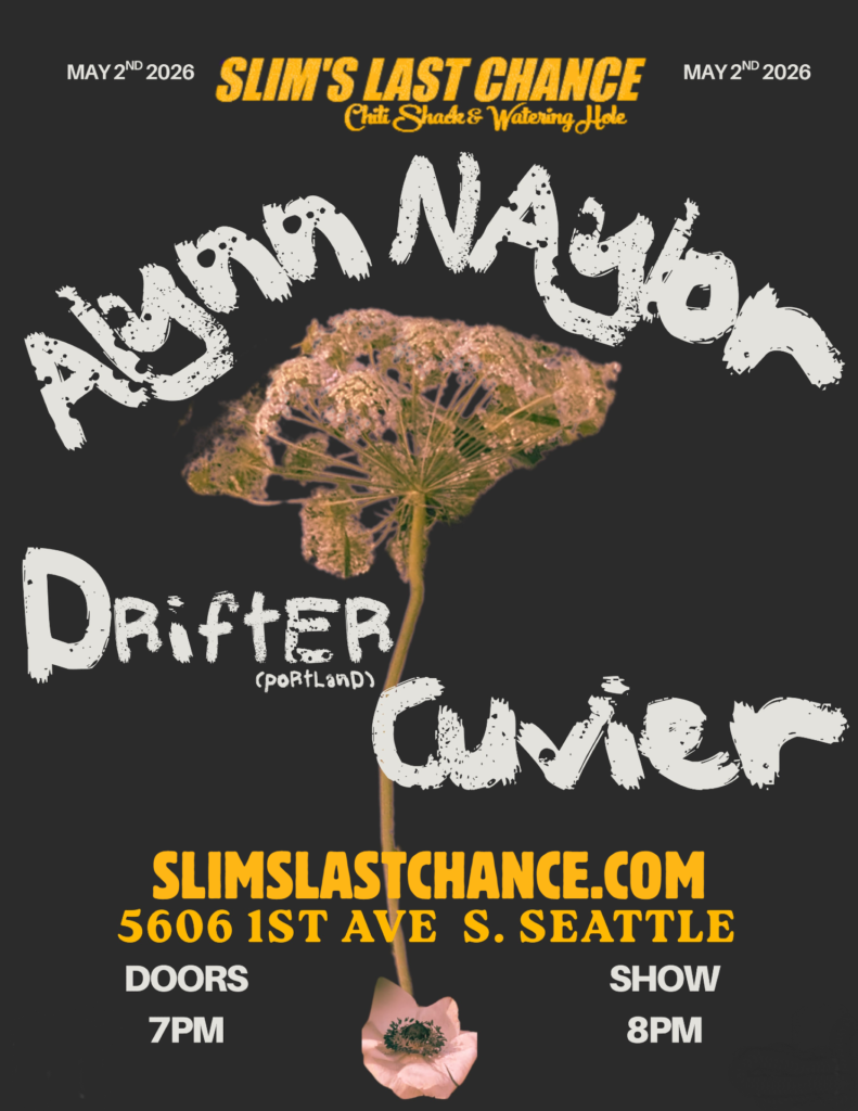 Come on out and enjoy yer self with a great show: Allyn Naylor, Cuvier & Drifter at Slim’s Last Chance in Georgetown/Seattle, WA on 3/28!